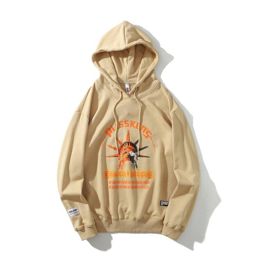Street Wear Hip Hop Style Funny Statue of Liberty Hoodie Sweatshirt Men Harajuku Hoodie Pullover Cotton Khaki